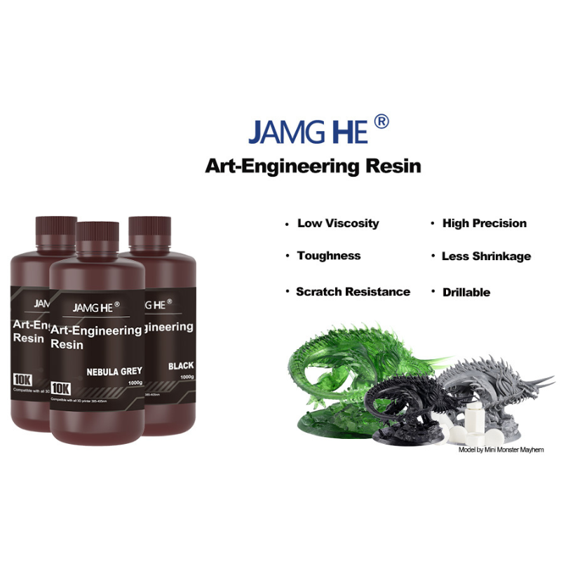 - High Precision and finest detail: Jamg he 10k Art-Engineering resin has great smooth surface and high accurate.